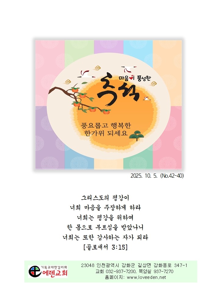 10월 5일 에덴교회 주일 예배
