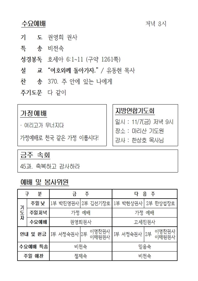 10월 31일 에덴교회 금요기도회