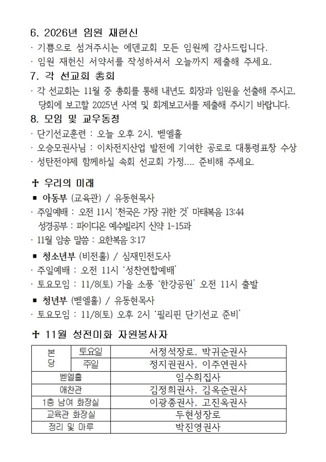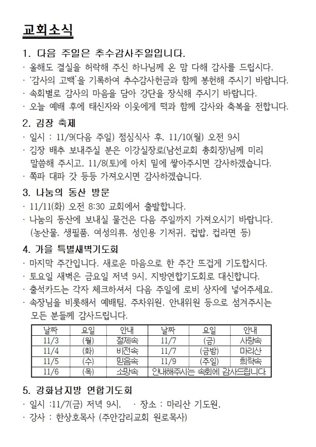 교회행사일정