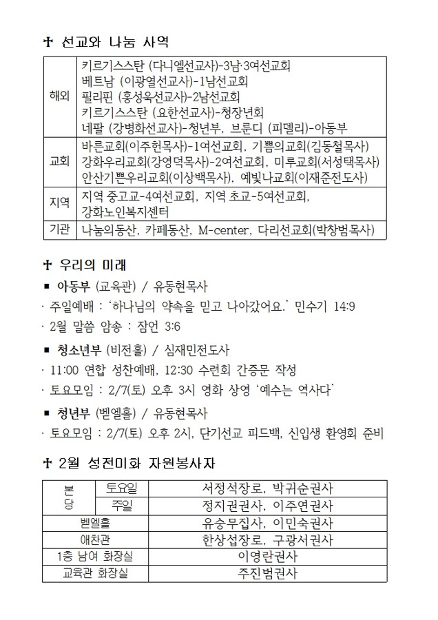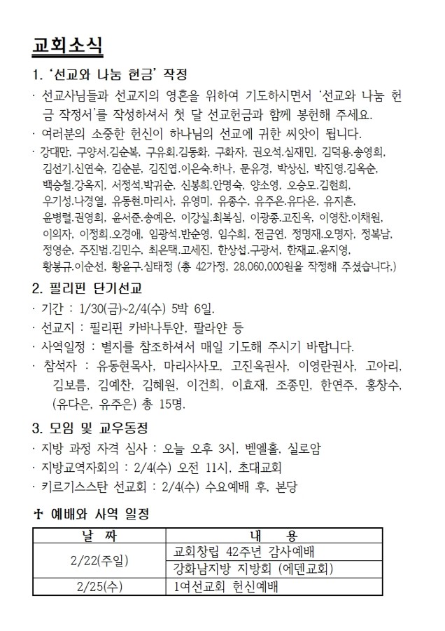 교회행사일정
