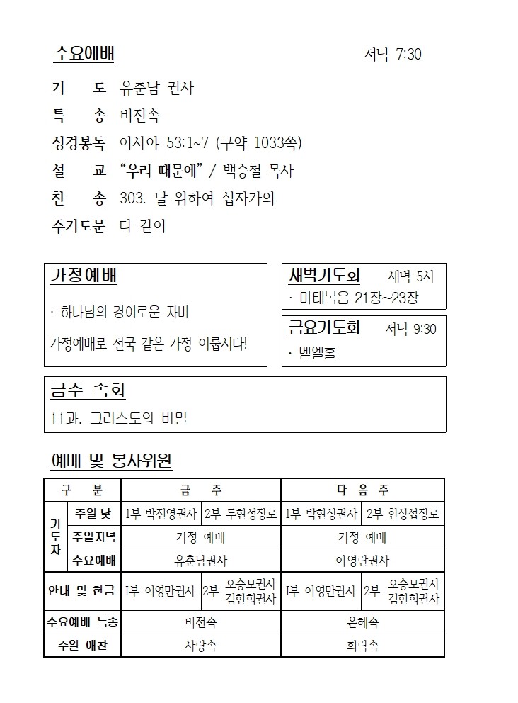 3월 4일 에덴교회 수요예배