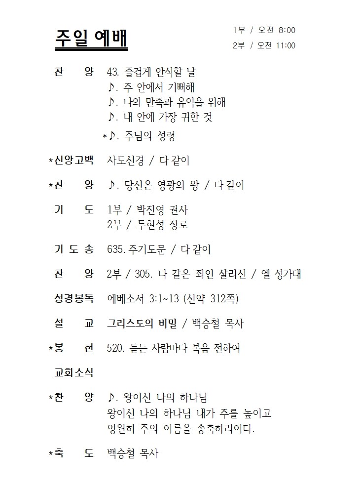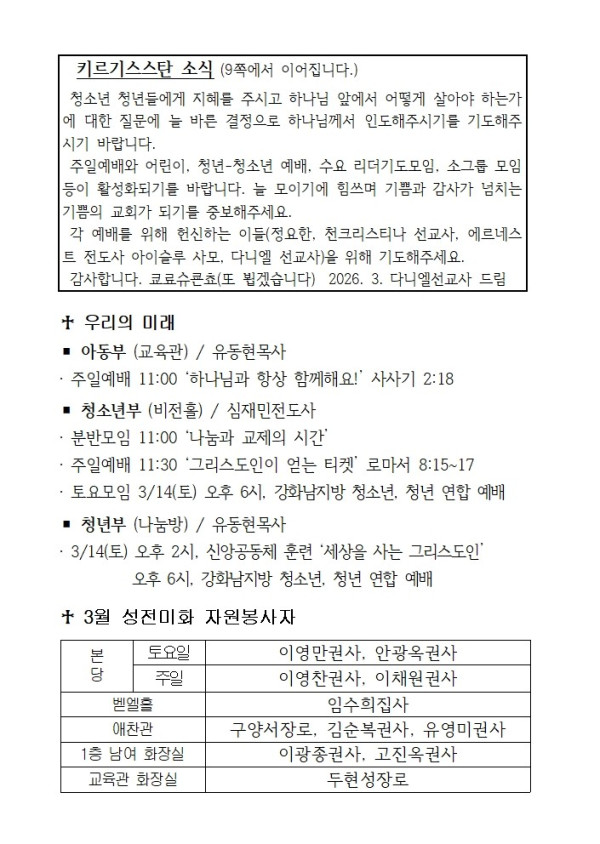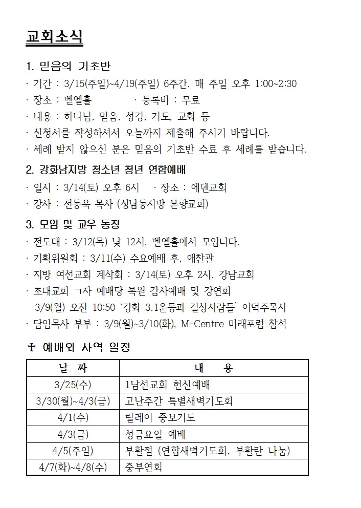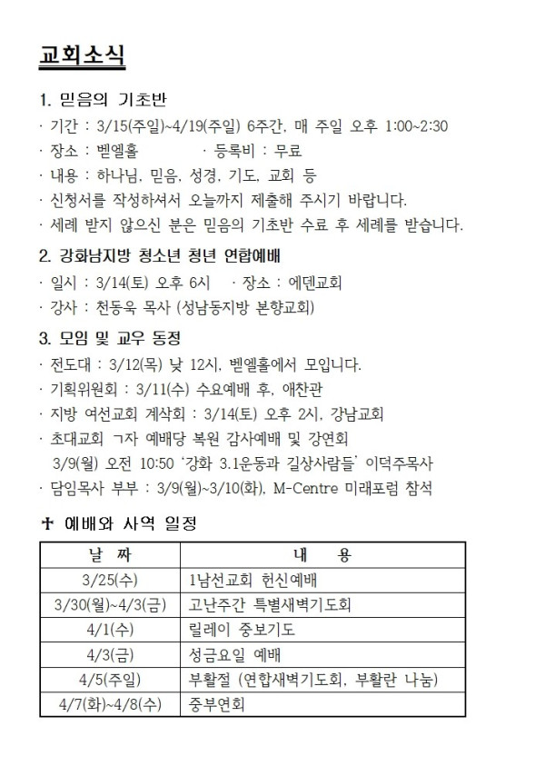 3월 8일 에덴교회 주보