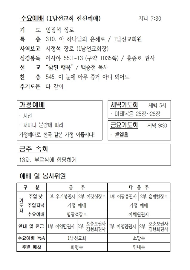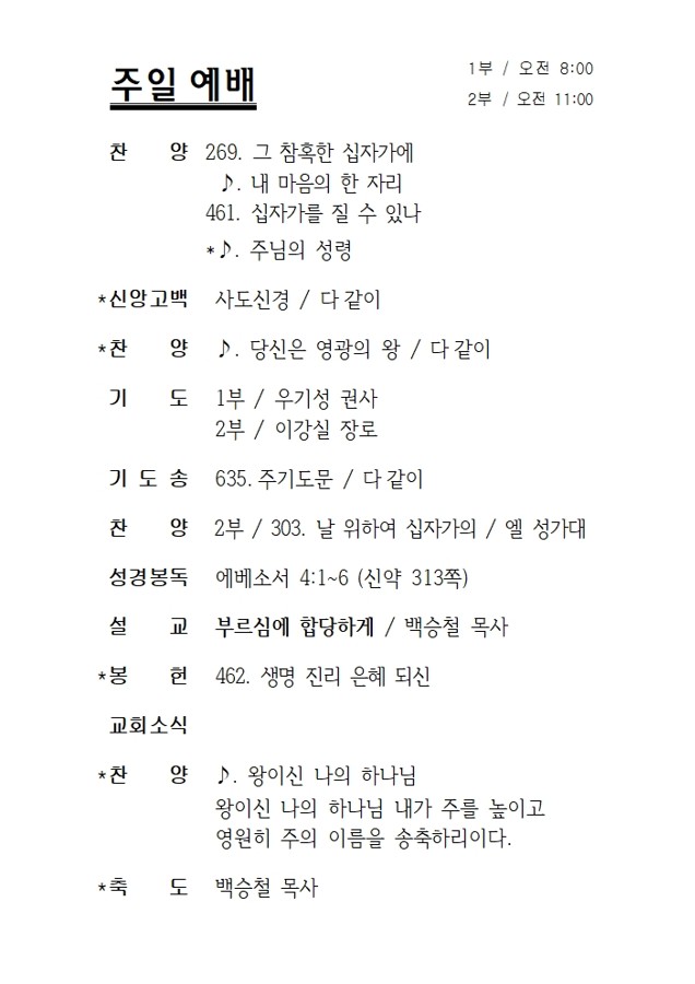 3월 18일 에덴교회 수요예배