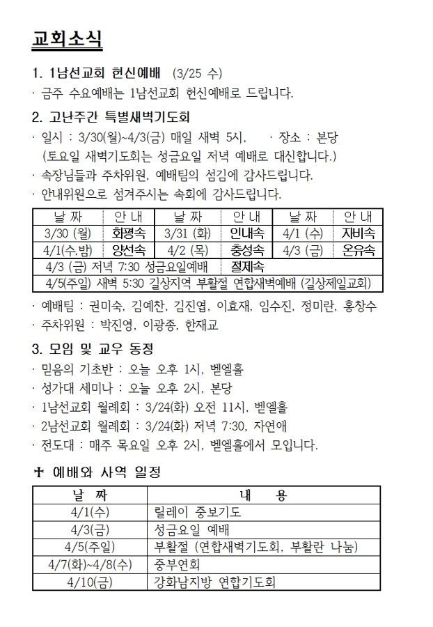 교회행사일정