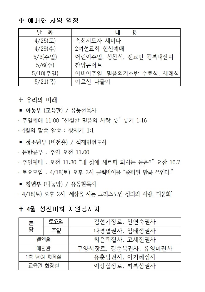 교회행사일정