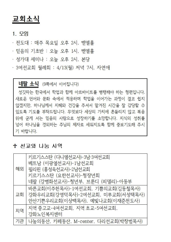 선교지소식