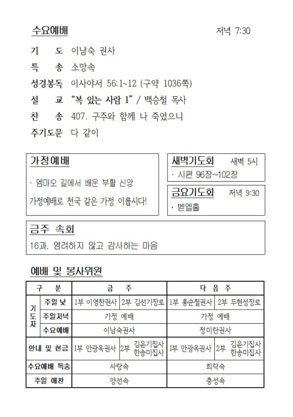 4월 8일 에덴교회 수요예배