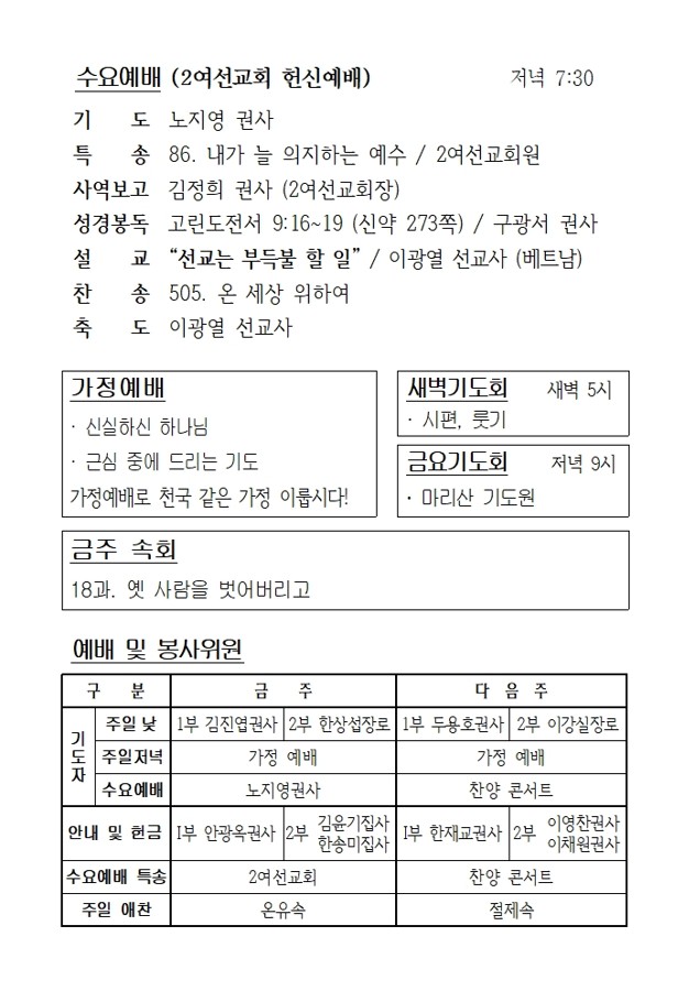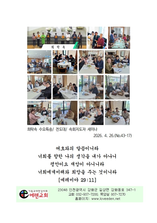 4월 24일 에덴교회 금요기도회