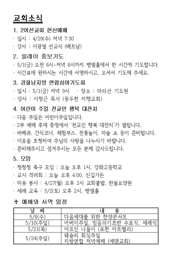 교회행사일정